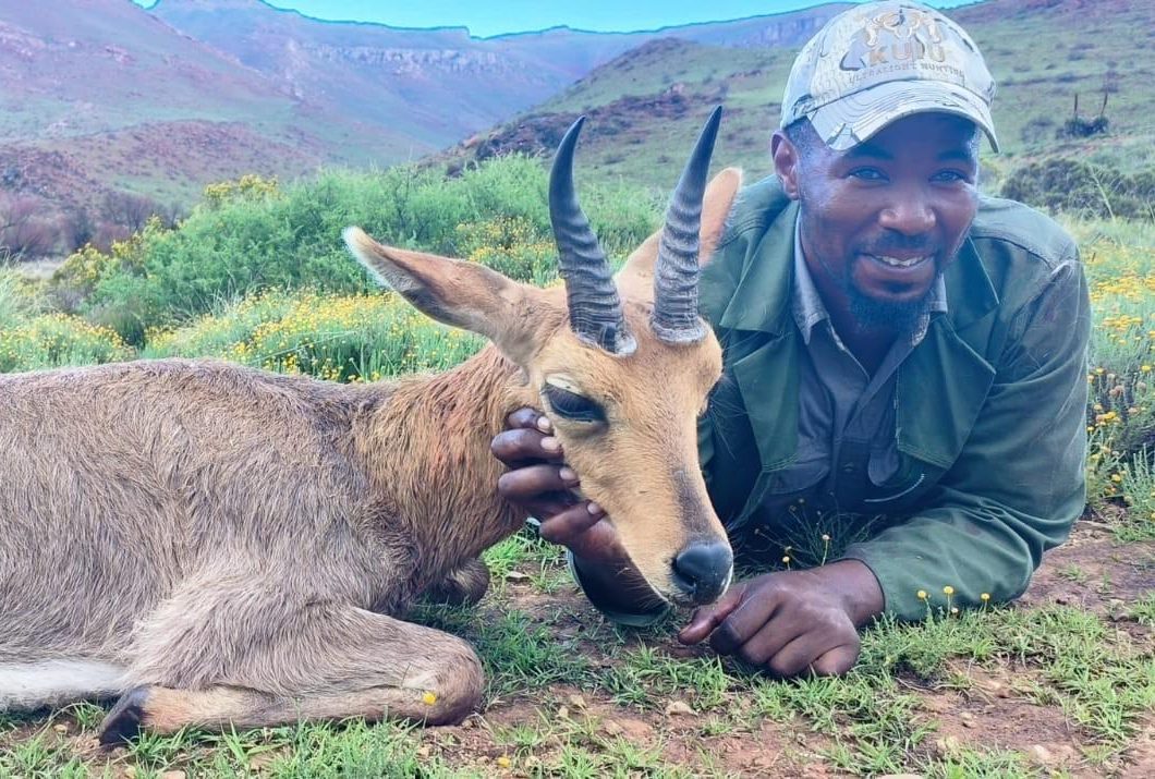 We were delighted to welcome Bob back to Africa for his 4th plains game hunt with KWS, this time to hunt our Tiny Ten Hunting Package. The package included klipspringer, vaal rhebuck, steenbok and common duiker. Along with oribi, blue duiker and cape grysbuck they make up 7 of the tiny ten species found in the Eastern Cape.