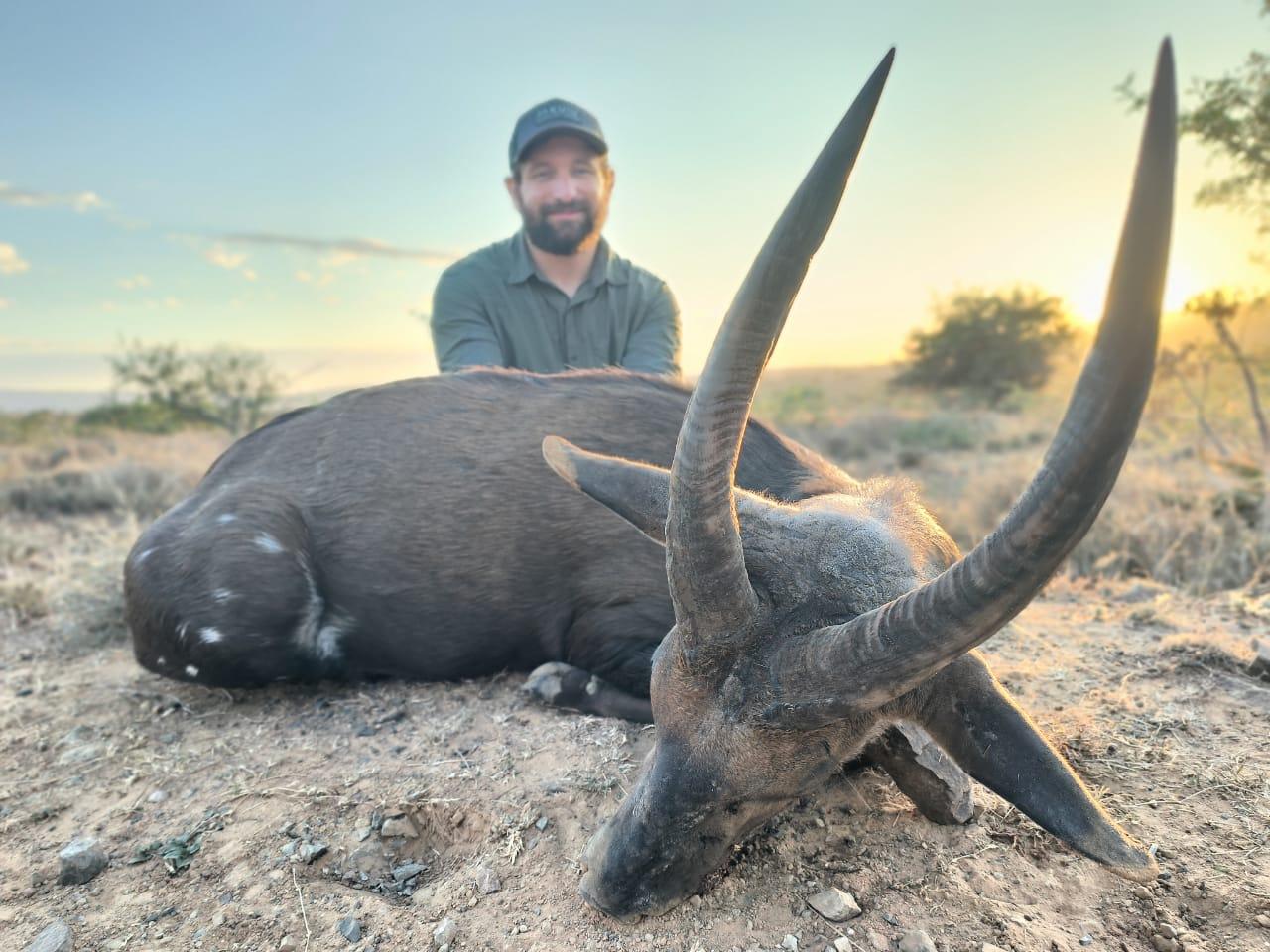 Evan returned for his 2nd hunt in 2025, bringing his girlfriend with him on this occasion. Evan is an enthusiastic hunter and outdoorsman and it's always a pleasure to welcome him back to the Karoo. We worked hard for the bushpig on bait, getting it on the 3rd night. Evan also hunted an eland, nyala, gemsbok, bushbuck and red hartebeest.